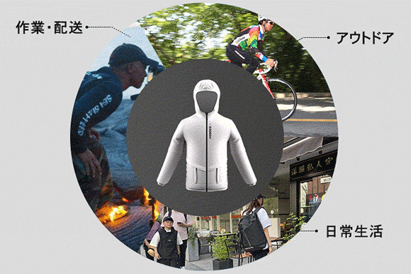 3D循環送風によって、空気を服の中に取り込み、汗の気化を促進し、体温と湿度を快適なレベルまで調整してくれます。