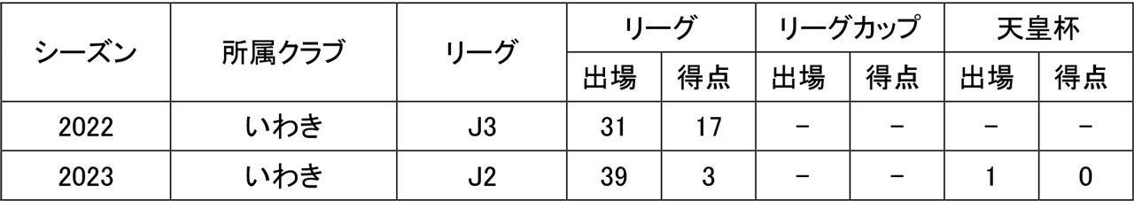 所属歴/沢見大谷FC – FC NEO Jrユース – 小倉工業高校 – 国士舘大学 – いわきFC
