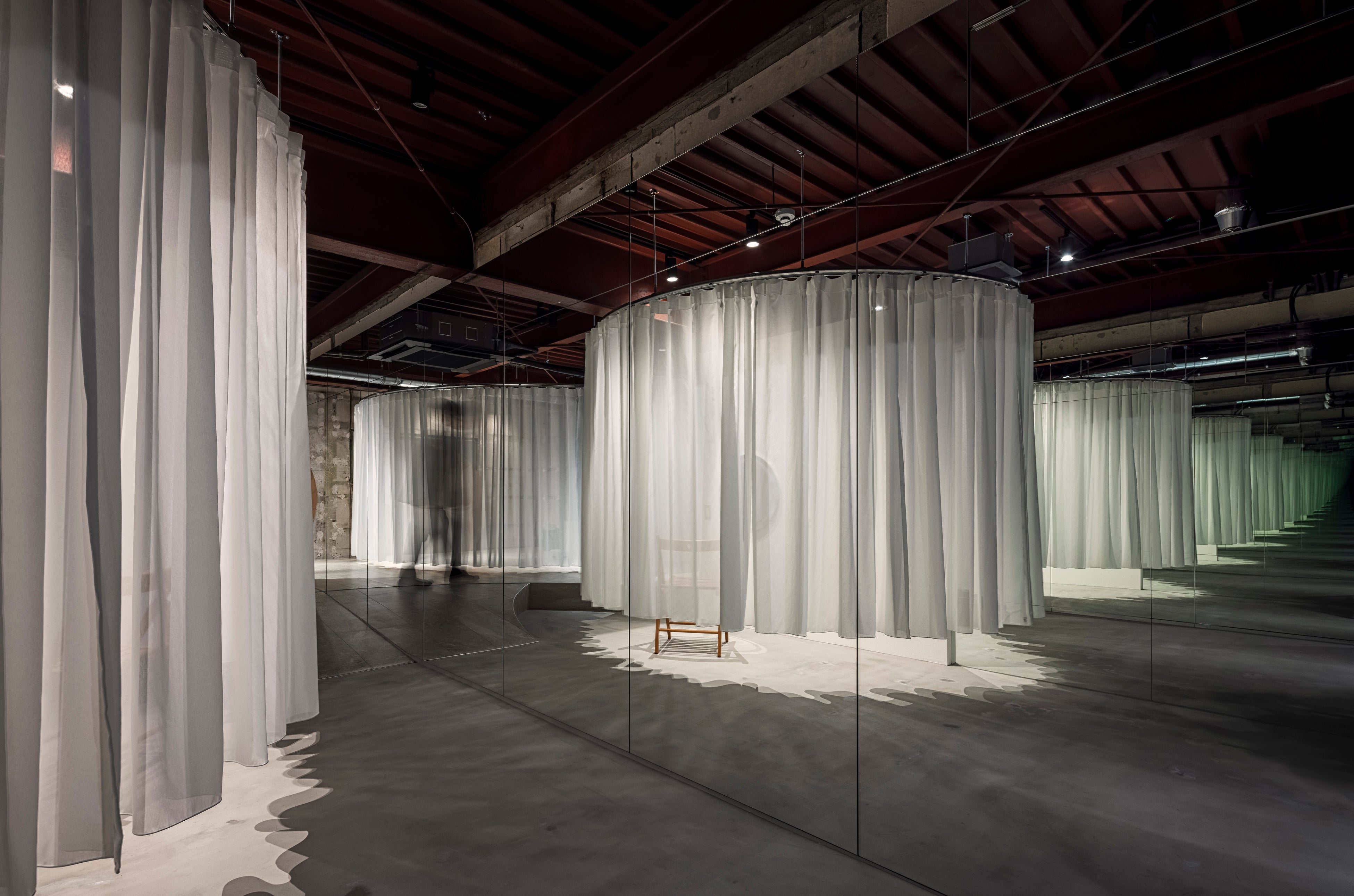「生まれ変わる」をコンセプトとし、サロンで新たな自分に生まれ変わる顧客の体験と、空間をリンクしていくようにデザイン。古いテナントビルの既存の特性を活かしつつ、新たな特性を加えることで空間を作り上げている。ラワンの曲げ合板を壁に沿わせ、木目を残しつつ銀色に塗装。可動式ミラーを掛けるなどの機能もあり、サロンのアイコンとなっている。空間全体を銀色の帯でつなぐことで空間を統一し、インパクトのあるデザインに仕上げた。