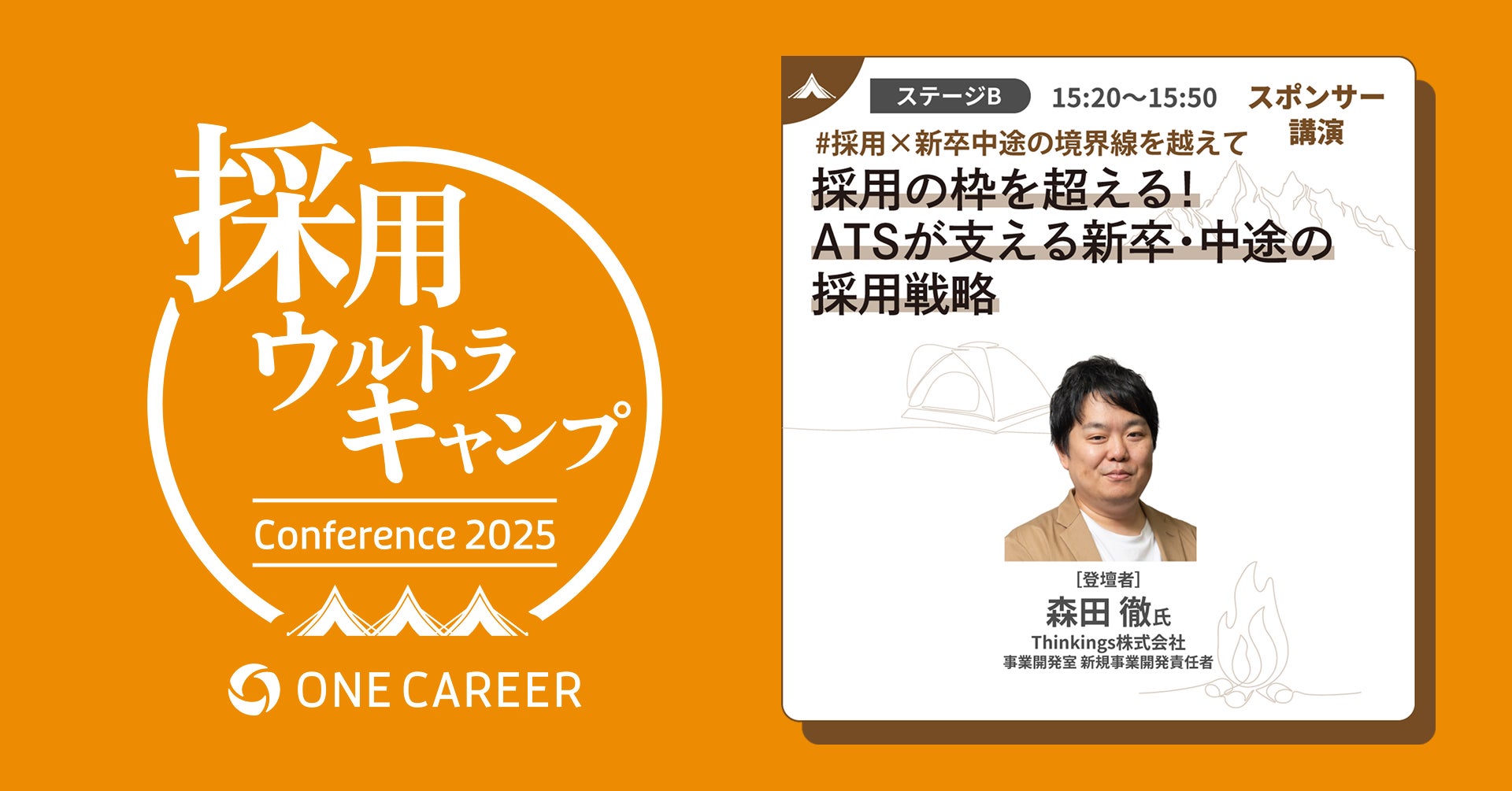 組織づくりのプラットフォーム「sonar HRテクノロジー」を展開するThinkings株式会社(シンキングス、本社:東京都中央区、代表取締役社長:吉田 崇)の新規事業開発責任者 森田 徹が、株式会社ワンキャリア(本社:東京都渋谷区、代表取締役社長 執行役員CEO:宮下 尚之、以下ワンキャリア)主催の大型カンファレンス「採用ウルトラキャンプ」(2025年10月16日(木)、京都市開催)に登壇し、「ATSが支える新卒・中途の境界を超えた新しい採用戦略」について解説します。