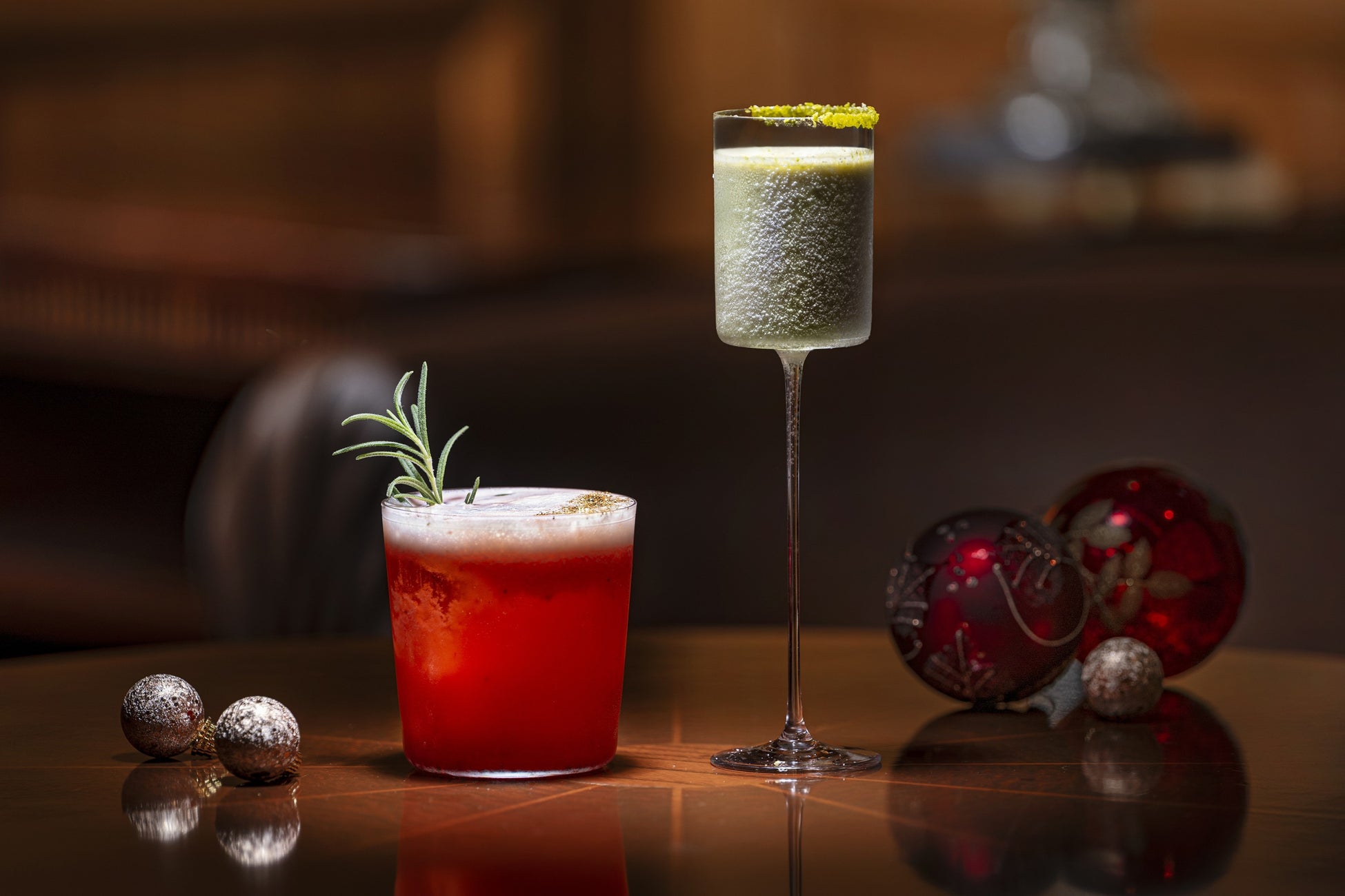 バーテンダーがクリスマス気分を盛り上げる2種類の限定カクテルをご用意しました。「Noël Pistachio Hopper」は、“季のTEA”にピスタチオとマスカルポーネチーズを合わせた、香ばしくクリーミーなデザートカクテル。「Strawberry Christmas Fizz」は、テキーラとストロベリーが香る、華やかで甘みのある一杯です。特別な夜にふさわしいカクテルで、心弾むクリスマスのひとときをお過ごしください。