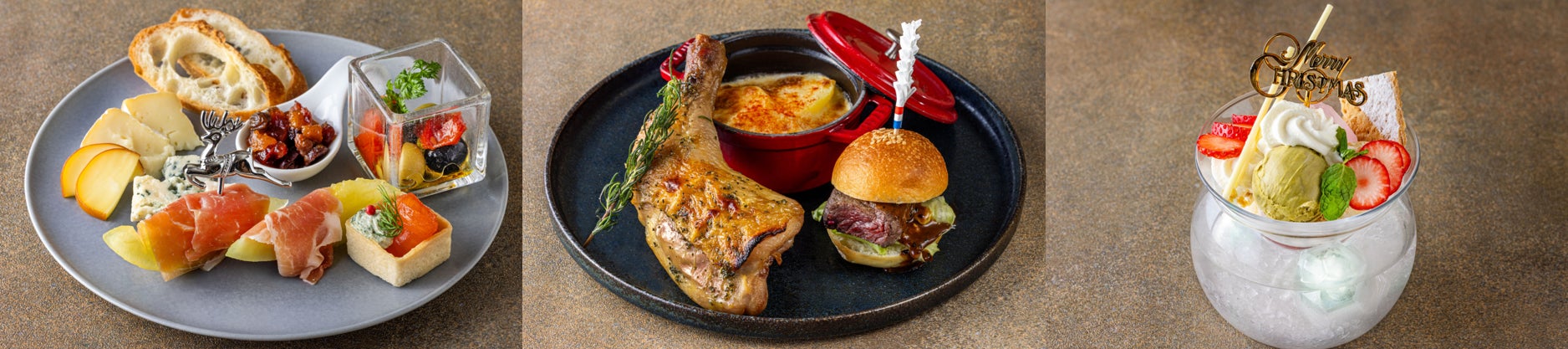 美食の国ベルギーをテーマにした「コンパス」ヨーロッパフェアでは、ベルギー名物ムール貝のワイン蒸しやベルジャンフリッツ、石焼バベットステーキなど本場の味が勢揃い。ワッフルやベルギーチョコレートのスイーツ、豊富なベルギービールもご用意しています。クリスマス期間はローストチキンや牛肉のパイ包み、いくら寿司、プレミアムショートケーキなど限定メニューも登場。シェフ當間こだわりの多彩な料理を、ご家族やご友人とクリスマスムードあふれる「コンパス」でお楽しみください。