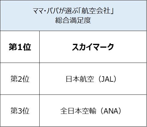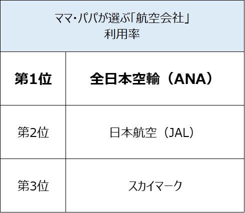 子どもがいるママ・パパ349人の結果は、「全日本空輸(ANA)」が利用率第1位(同サービスはリピート率も第1位) 、「スカイマーク」が総合満足度第1位となりました。