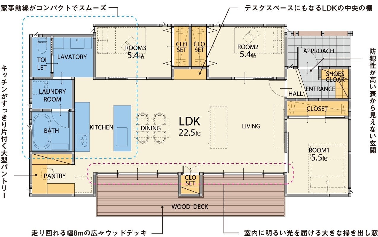 ✔ 玄関は外から見えない設計で高い防犯性とプライバシーを両立