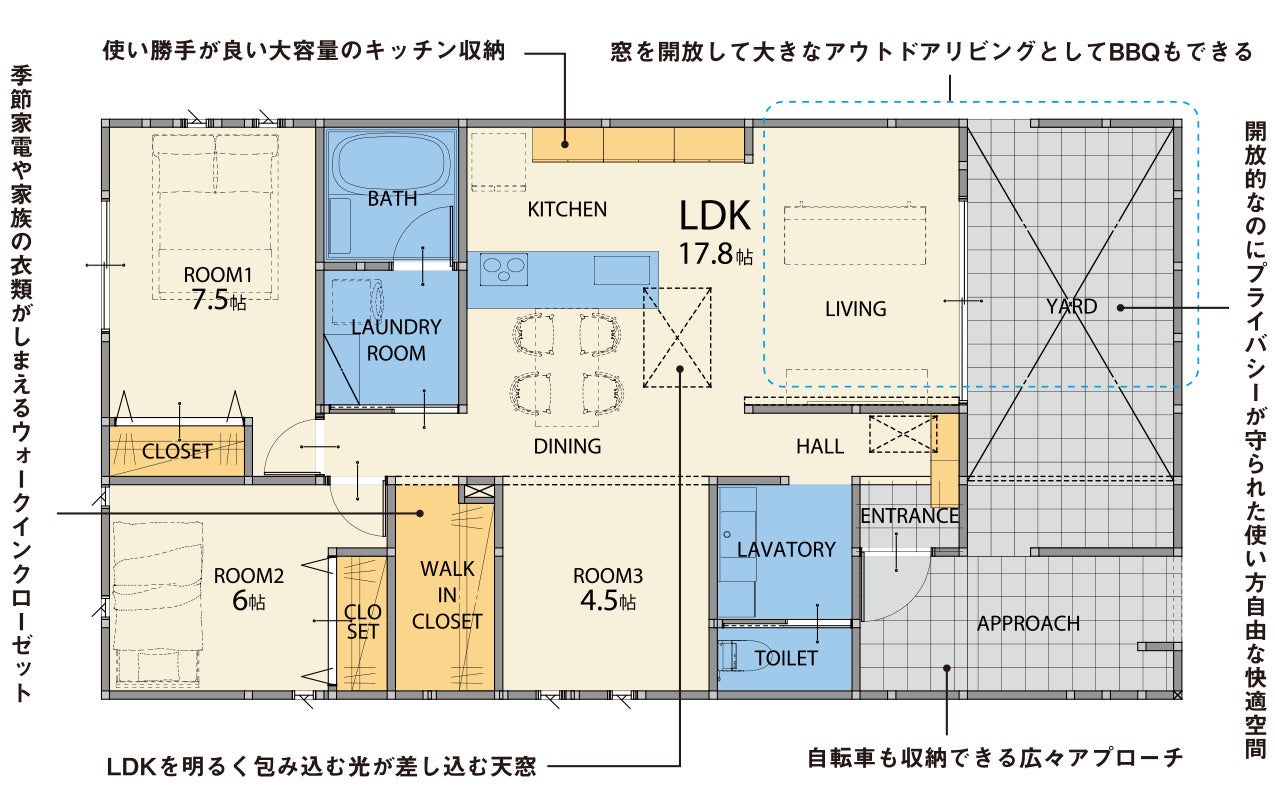 ✔ アウトドアリビングとして楽しめるヤード空間