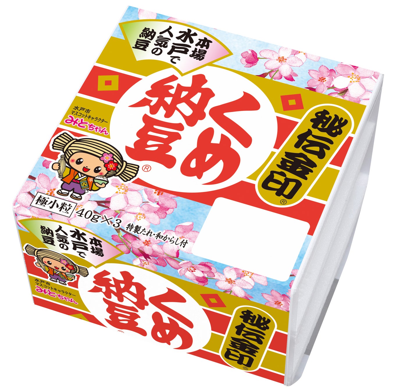水戸で人気の納豆「くめ納豆 秘伝金印」の春限定パッケージに、水戸市マスコットキャラクター「みとちゃん」が登場!