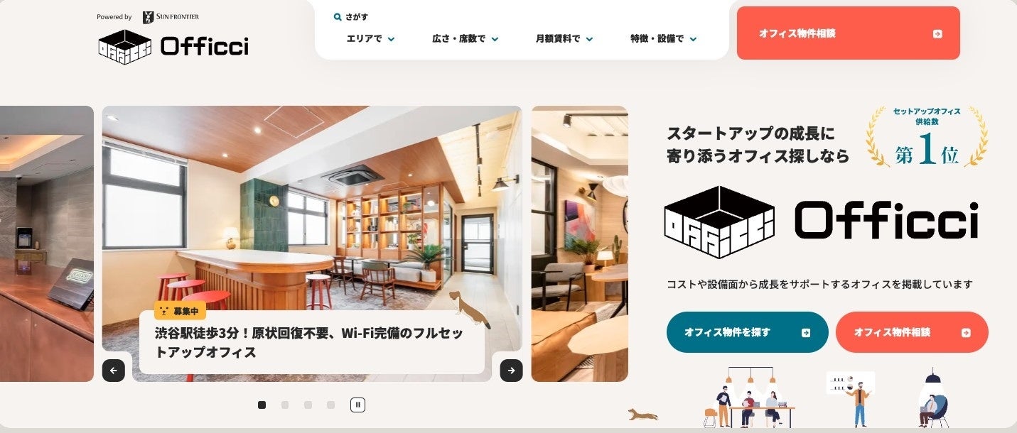 サンフロンティア不動産株式会社(本社:東京都千代田区、代表取締役社長:齋藤 清一、以下「当社」)は、スタートアップ企業向けのオフィス物件情報サイト「Officci(オフィッチ)」を2024年12月2日にプレオープンしました。2025年1月8日のグランドオープンに先駆け、スタートアップ企業の皆様におすすめのオフィス物件検索サービスをご提供しています。