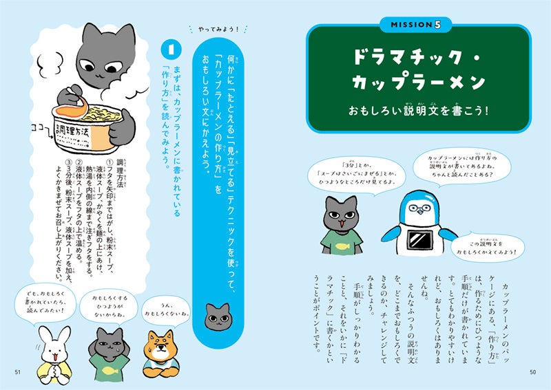 例えば、インパクトのある書き出しや作り方をを目指す「インパクトライティング」や、おもしろい説明文で書いてみる「ドラマチック・カップラーメン」など、遊び心あふれるアプローチが満載。