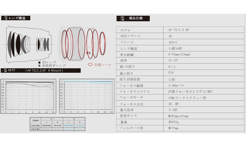 【新発売】Viltrox 75mm F1.2 XF 富士 APS-Cレンズ 大口径 ポートレート、風景、室内、建築、夜景など