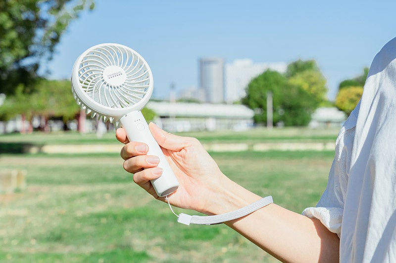 折りたたみができコンパクトなマルチハンディファンは持ち運びも簡単。