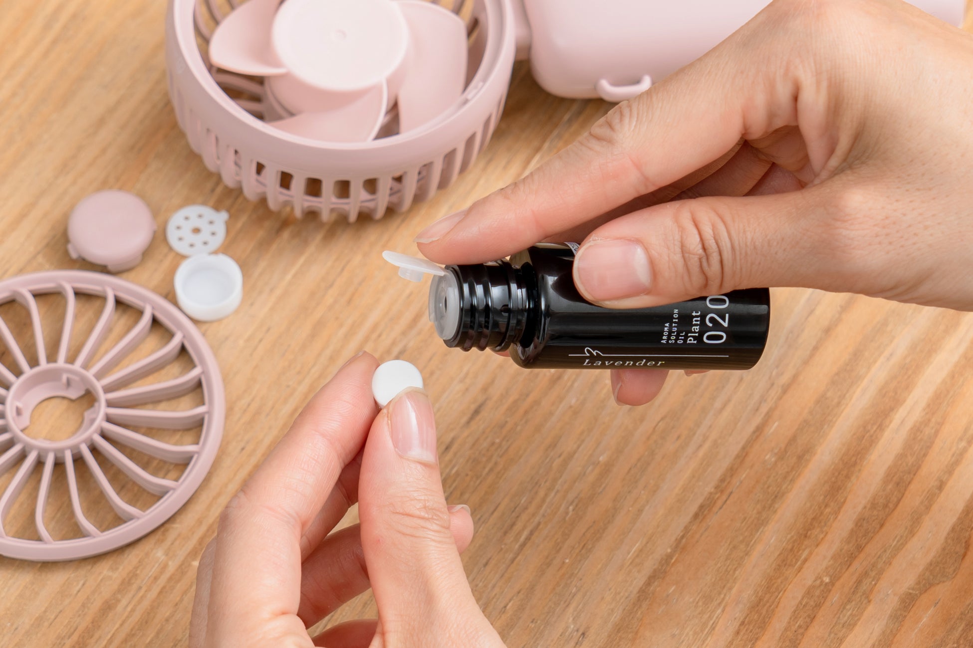 お好みのアロマオイルを、付属トレイのアロマパッドに数滴。
