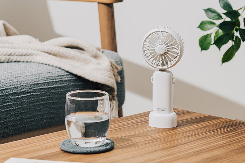 屋内でも周りの目が気にならないほど静かなのに、風量はパワフルなハンディファン。