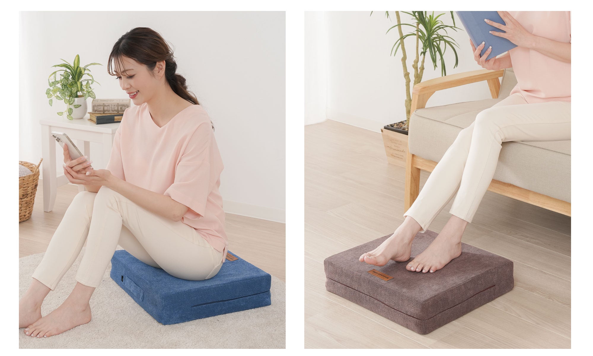 インテリアにも馴染む落ち着いた色見&オシャレなデザインで、使わない時はクッションとして、オットマンとしても便利♪使用後は片付けをしなくてもいいので楽ちん♪