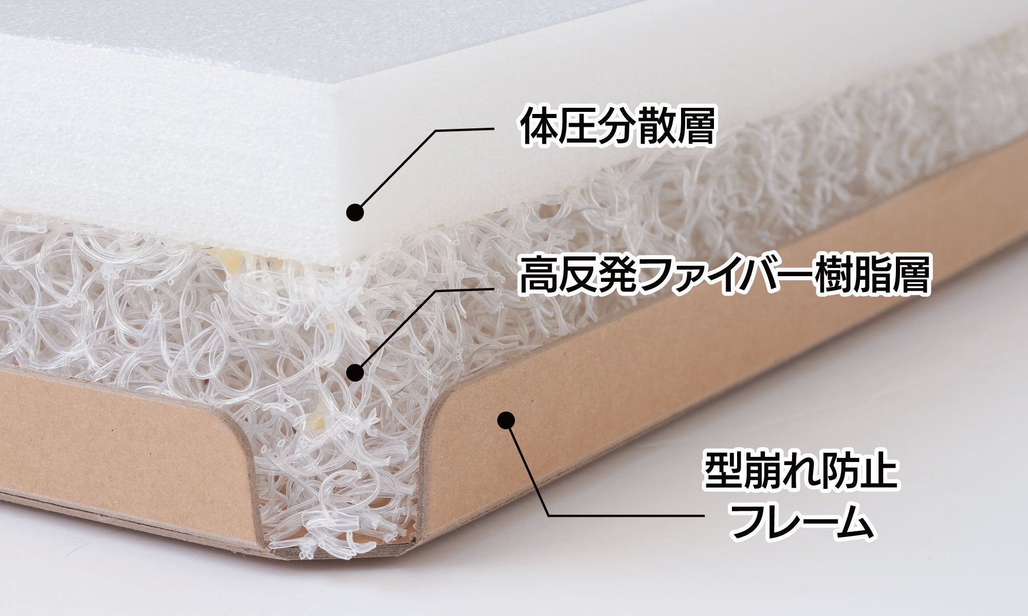中材はスプリングのような弾力性の高反発ファイバー樹脂が入っているので、弊社従来品よりスリムでありながらも驚きのバウンド力を実現できました!