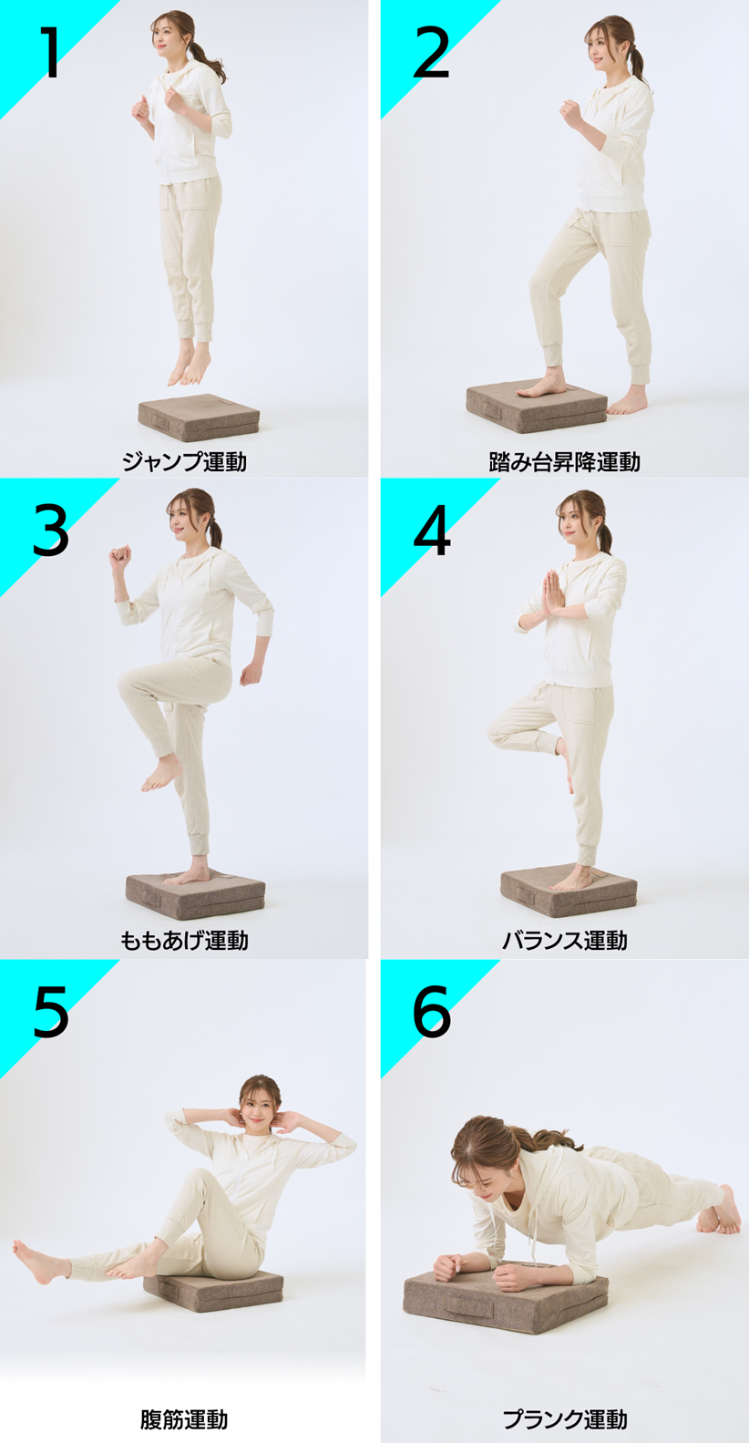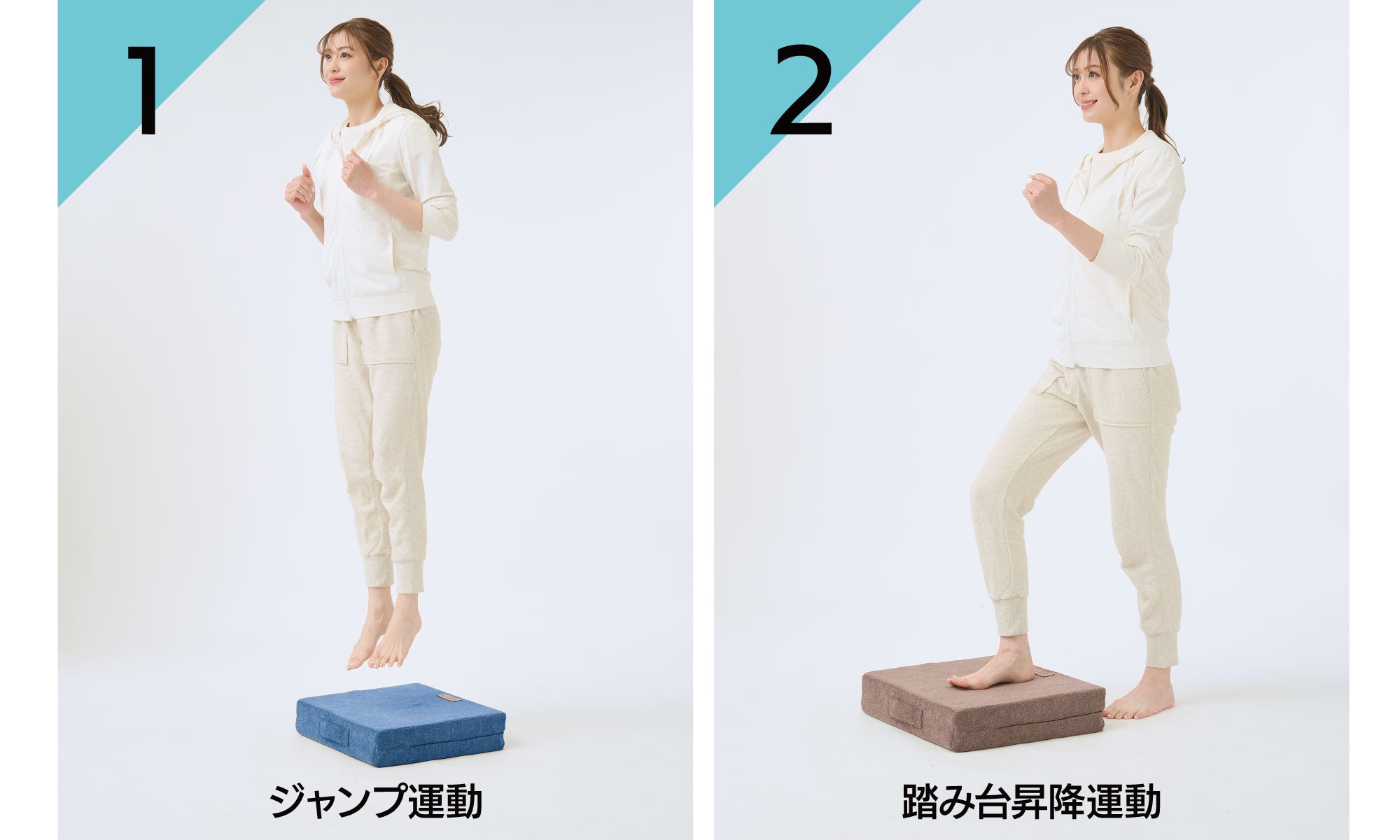 ジャンプだけでなく踏み台昇降運動など自分のレベルに合わせて、無理なく運動できます。