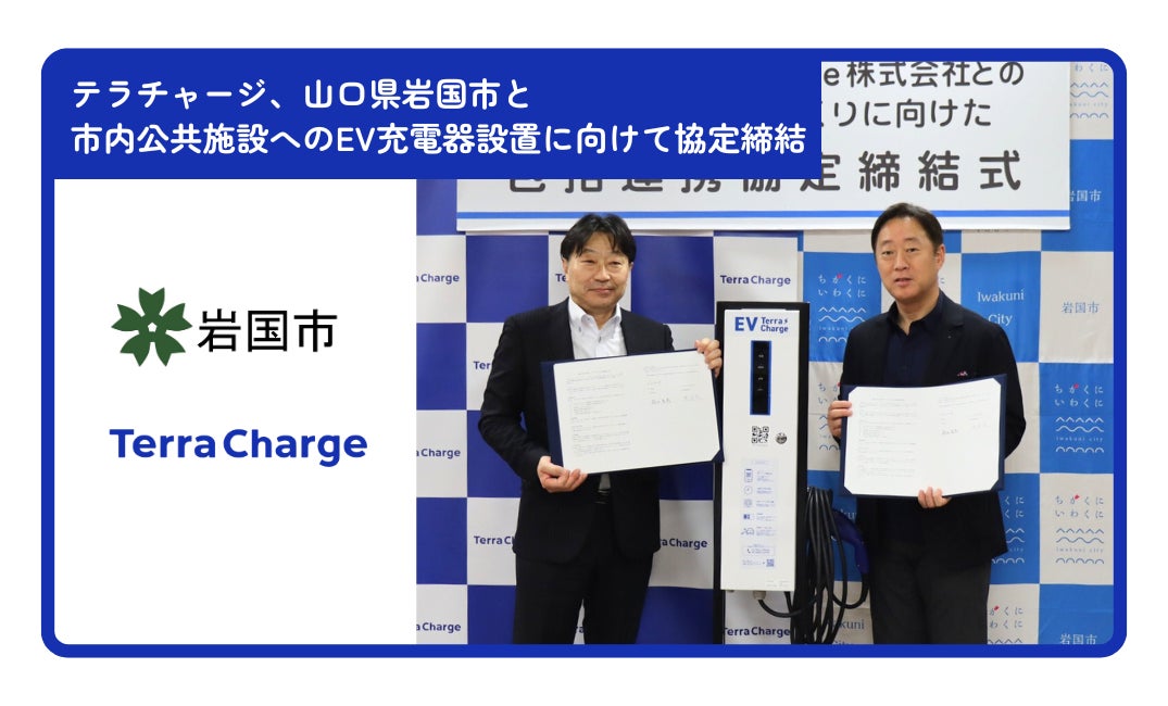 EV充電インフラ事業「Terra Charge(テラチャージ)」を展開するTerra Charge 株式会社(本社:東京都港区、代表取締役社長:徳重徹、以下「当社」)は、山口県岩国市(読み:いわくにし)と、「持続可能な地域づくりに向けた包括連携協定」(以下「本協定」)を2024年7月9日に締結したことをお知らせします。