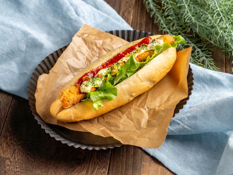 道産の鮭を使用したしゃけフライドッグに相性抜群のデミ味噌ソースで仕上げた一品