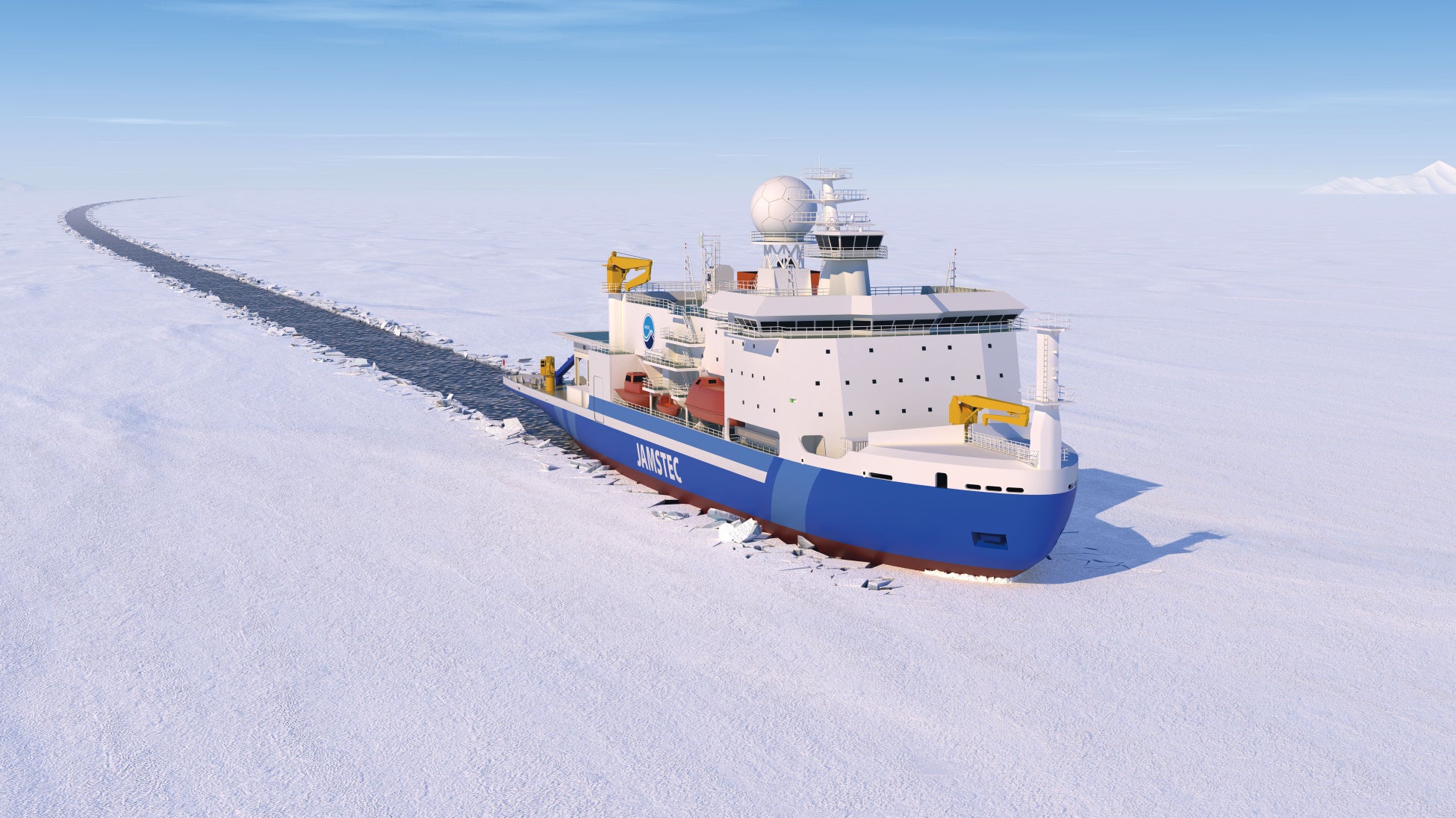 本船は、国立研究開発法人海洋研究開発機構(以下「JAMSTEC」)が建造を進めており、2026年11月頃の竣工を予定しています。研究船としては日本で初めて砕氷機能を持つのに加えて、世界最高レベルの研究観測機能を有しており、国際的な研究プラットフォームとしての活躍が期待されます。