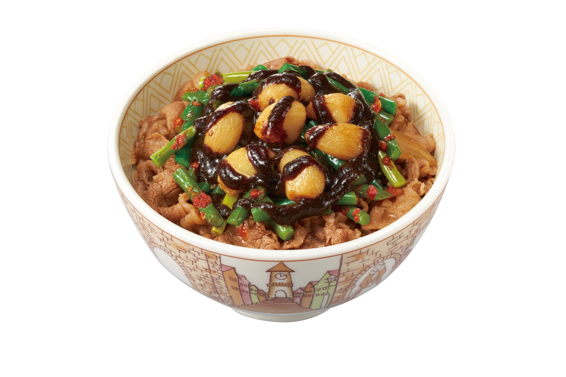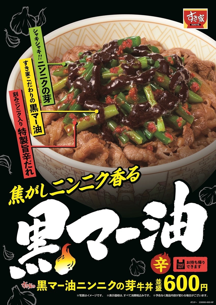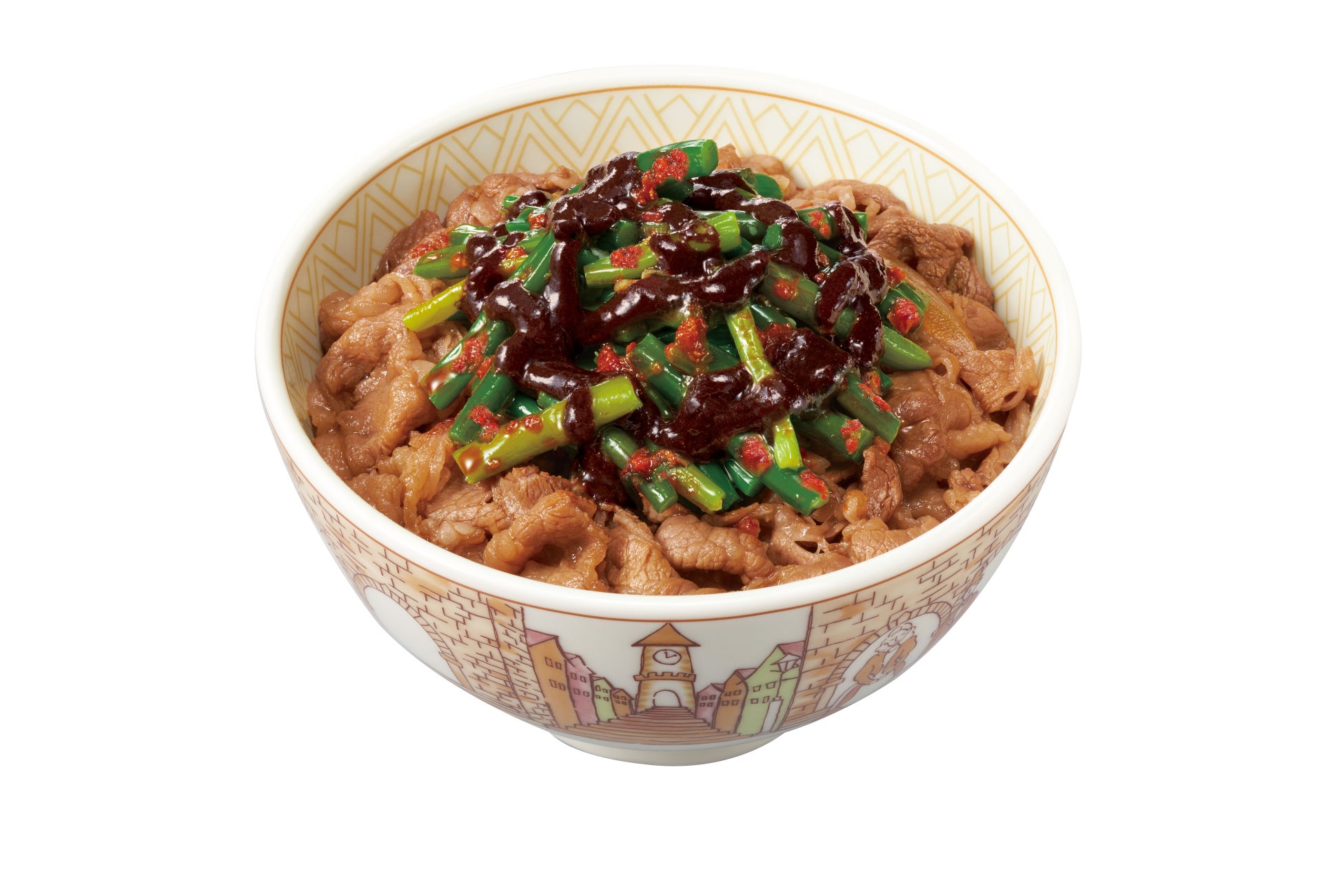 【すき家】大人気商品がパワーアップ!焦がしニンニク香る黒マー油と旨辛ニンニクの芽のダブルパンチ「黒マー油ニンニクの芽牛丼」新登場!