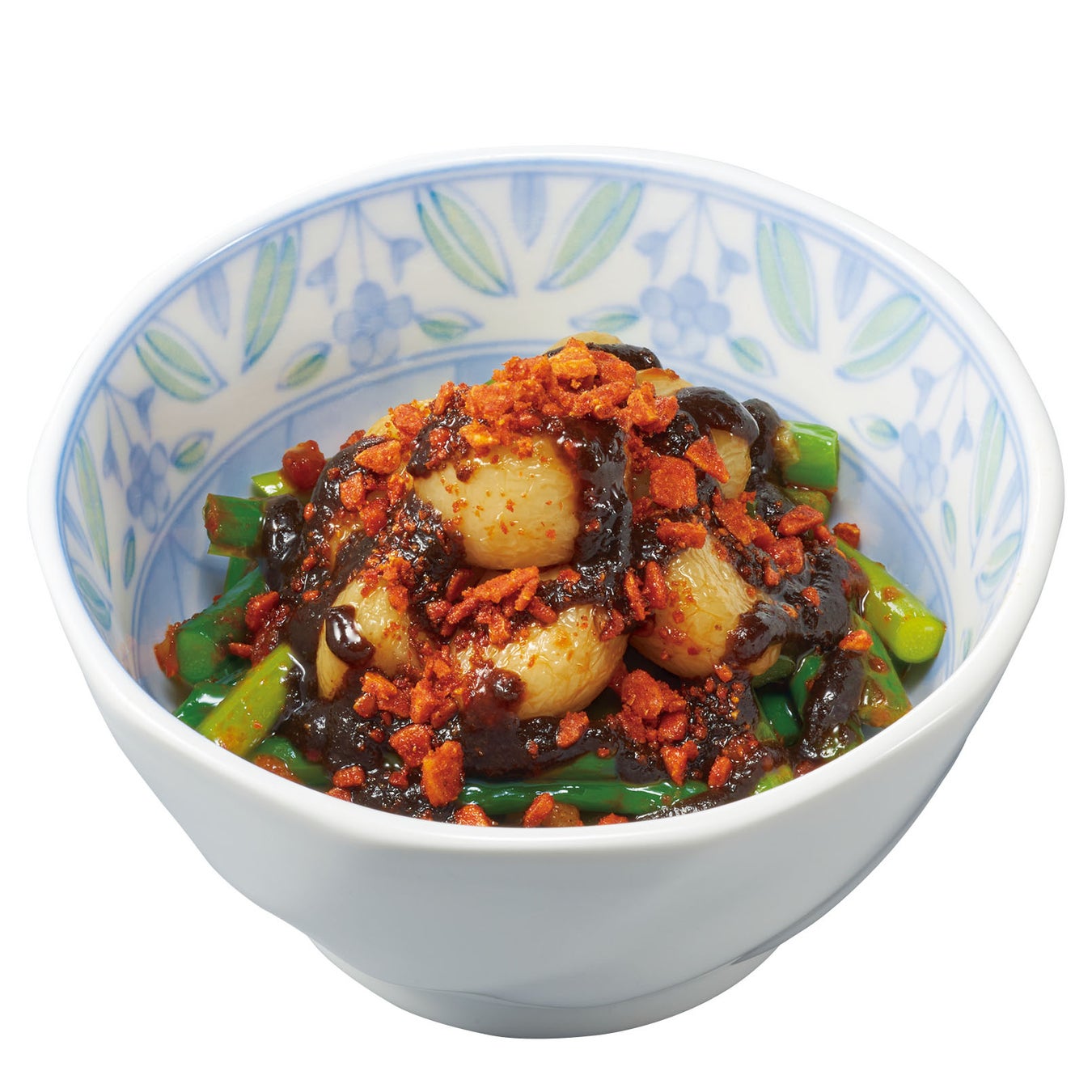 すき家こだわりの黒マー油ソースは、おろしニンニクをごま油でじっくり炒めることで、ニンニクの香りを立たせ、コクのある味わいに仕上げています。焦がしニンニクの深い香りと旨みが、旨辛なニンニクの芽と調和し、ごはんが進むこと間違いありません。