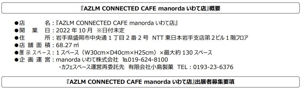 ライブマーケティングCAFE『AZLM CONNECTED CAFE manorda(マノルダ)いわて店』10月オープン デジタルとリアルを融合した地方創生の最新事業モデルが岩手からスタート‼