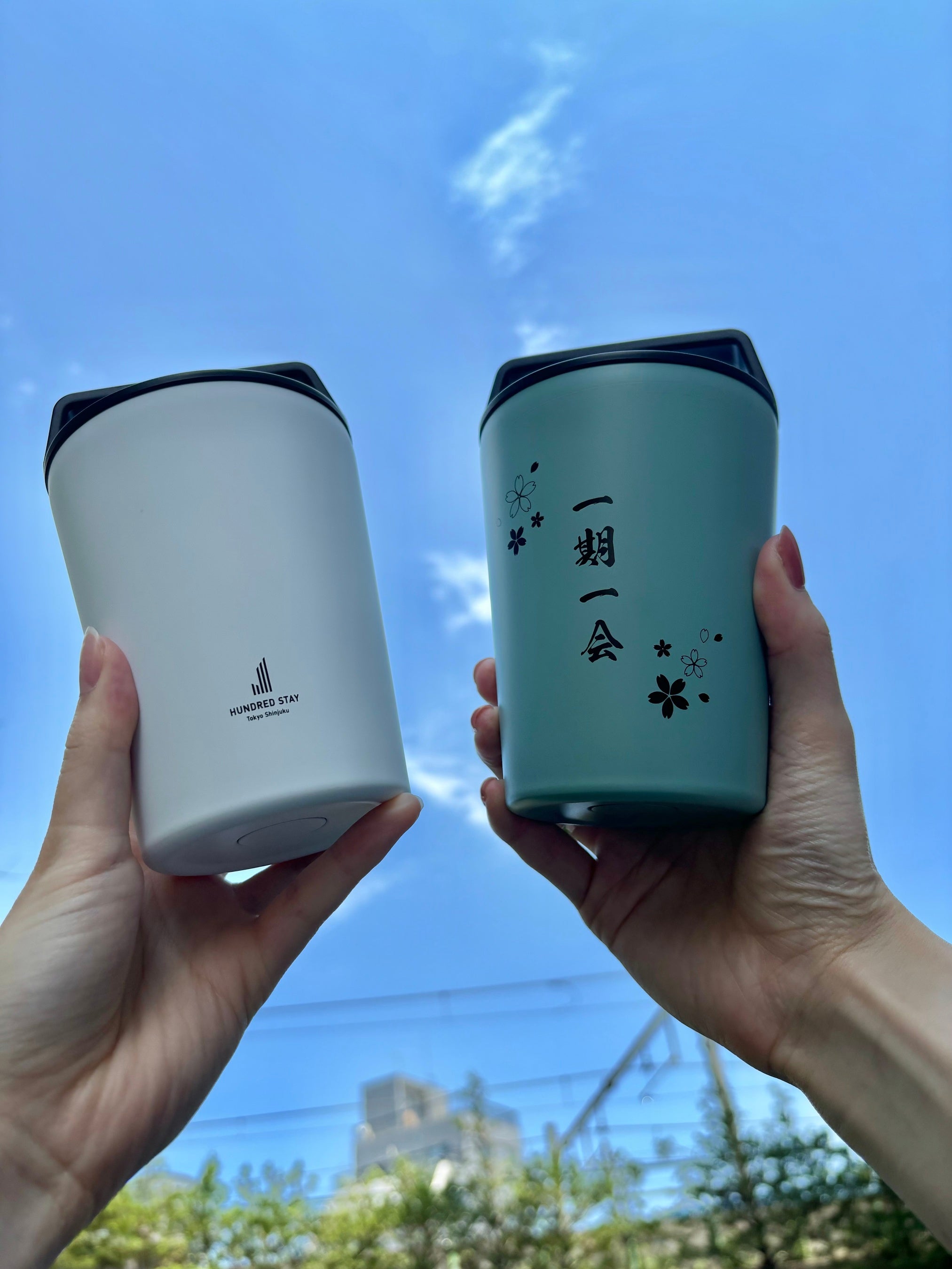 タンブラーデザインには、ハンドレッドステイ東京新宿からお客様への気持ちを込め、『一期一会』の文字をデザインに入れました。