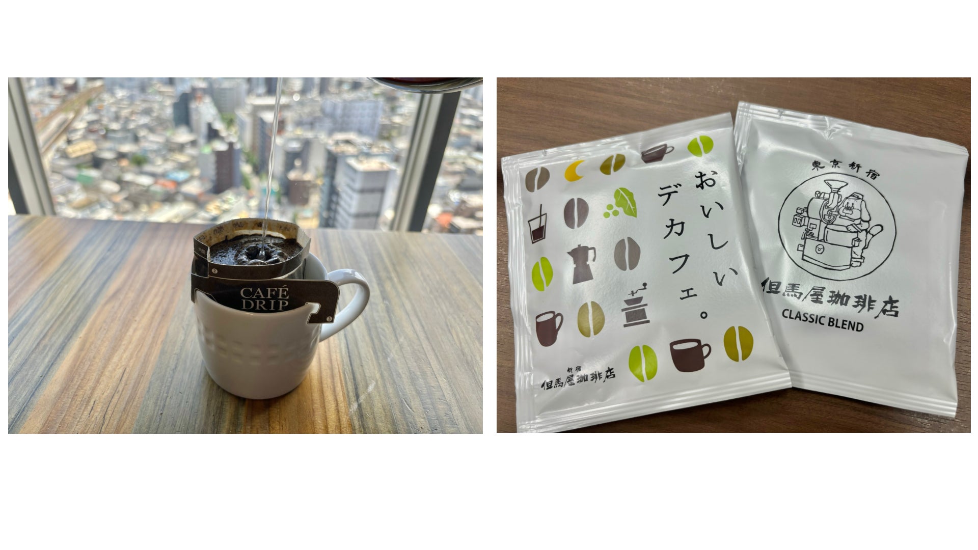 但馬屋珈琲店のドリップバッグコーヒーを2種類提供します。