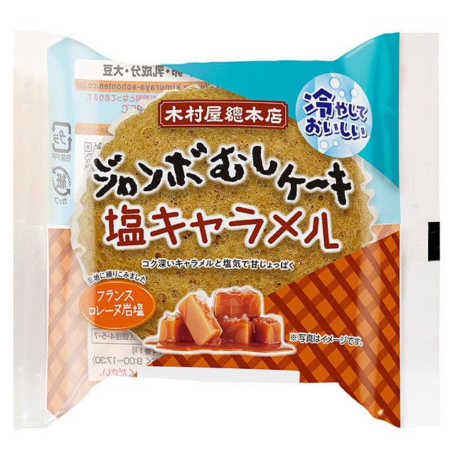 【木村屋總本店】<新商品>北海道産完熟らいでんメロン使用「ジャンボむしケーキ 北海道メロン」登場。夏にぴったり“塩”がアクセント「ジャンボむしケーキ 塩キャラメル」「どらやき 塩あん」