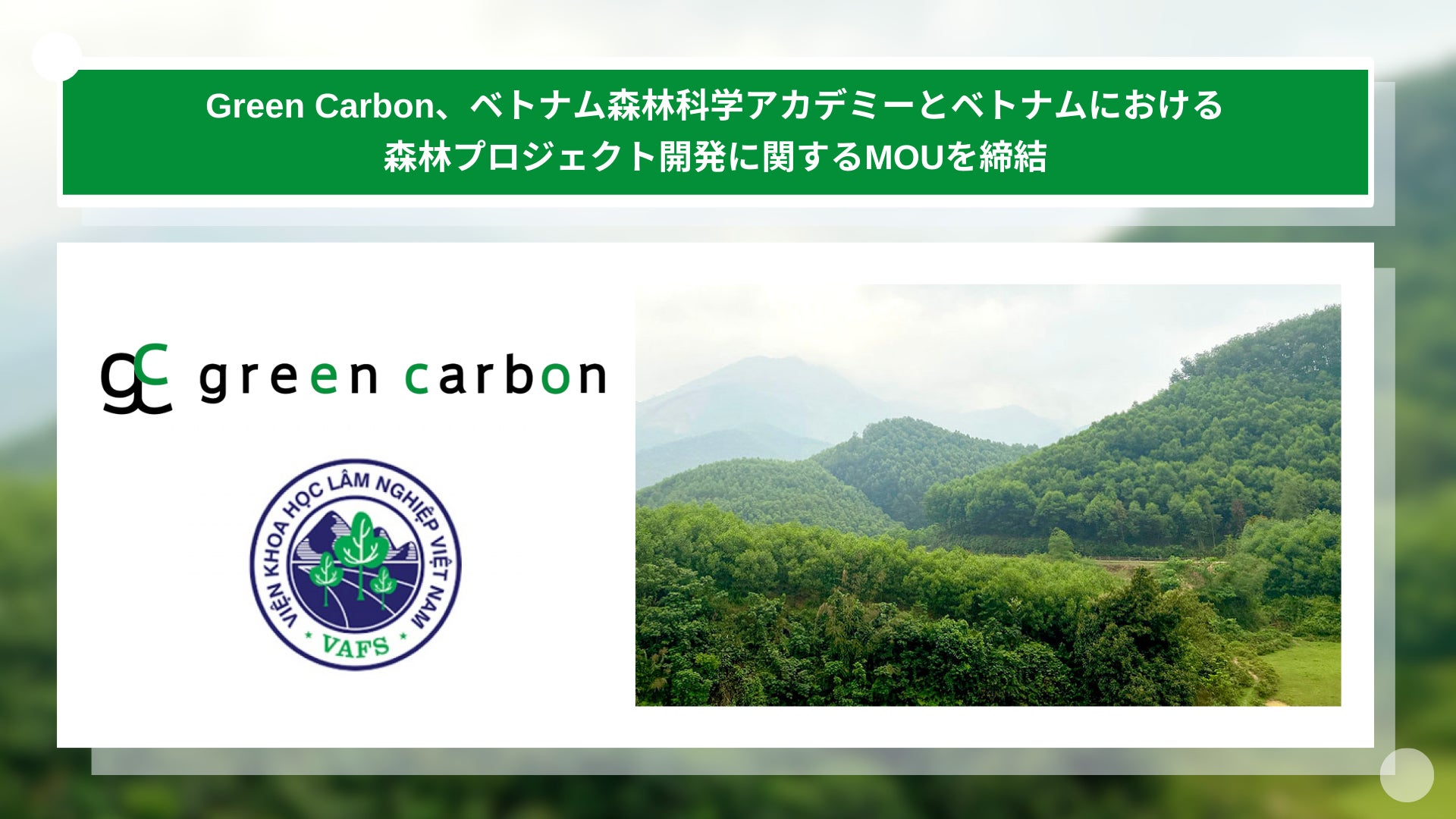 ネイチャーベースのカーボンクレジット創出・販売事業を展開するGreen Carbon株式会社(代表取締役:大北潤、以下Green Carbon(グリーンカーボン))は、ベトナム・トゥエンクアン省における森林カーボンプロジェクト(以下「本プロジェクト」)の開発を目的として、ベトナム森林科学アカデミー(Vietnamese Academy of Forestry Science、以下「VAFS」)と覚書(以下「本MOU」)を締結したことをお知らせします。