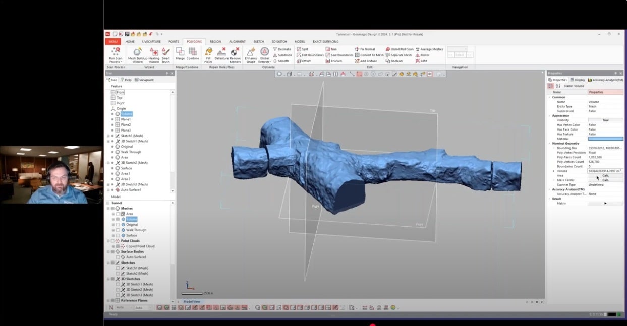 Geomagic Design X、採掘トンネルの体積・面積解析方法をYou-Tubeで動画公開中!