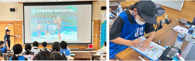 鮎が焼きあがるまでの間は、世界農業遺産「清流長良川の鮎」について学習しました。