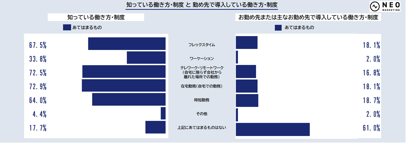 知っている働き方・制度と勤め先で導入している働き方・制度