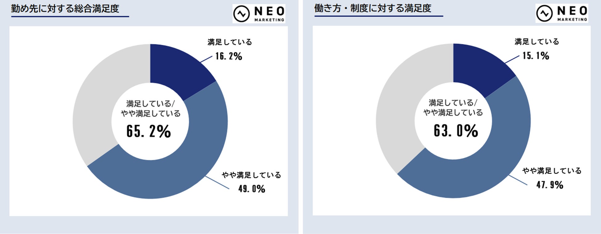 どちらも、「満足している」のみだと約15~16%ではあるものの、「満足している」「やや満足している」合計では60%を超えました。