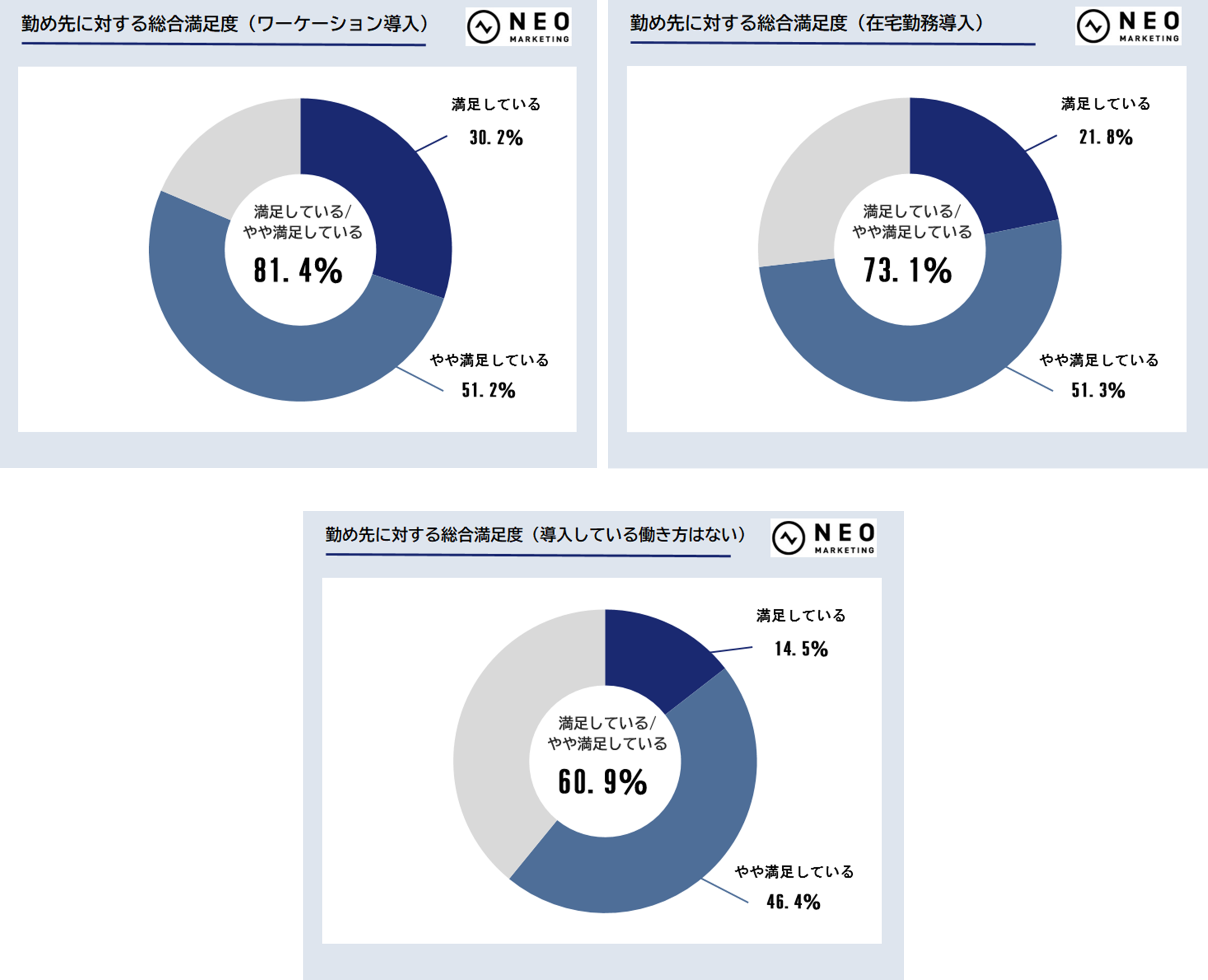 ◆勤め先に対する総合満足度:「ワーケーション」導入で81.4%・「在宅勤務」導入で73.1%