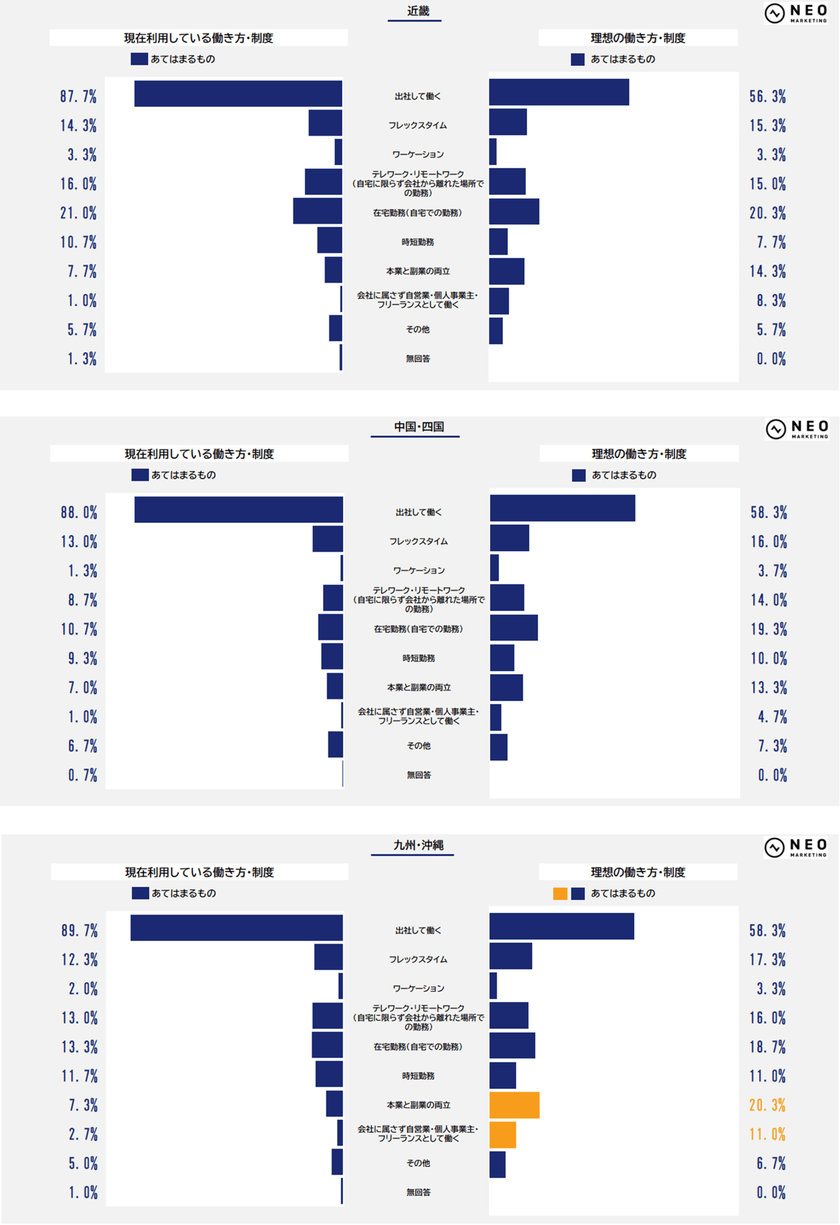 「地域別・働き方リサーチ ~第一弾:理想と現実編~」主な質問と回答