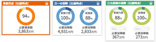 住宅・教育・介護施設等のリアルデータを活用してイメージを膨らませ、ライフイベントに優先度(Must・Want・Wish)をつけて、お客さまが叶えたい将来のゴール(目標)を設定することができます。これにより、実現性の高いライフプランを比較検討・選択できます。また、金融資産を短期・中期・長期の使途別に色分けすることで資金のバランスを確認・調整したり、三大疾病(がん・急性心筋梗塞・脳卒中)に罹患したリスクケースを検討したりといった様々なプランニングが可能です。