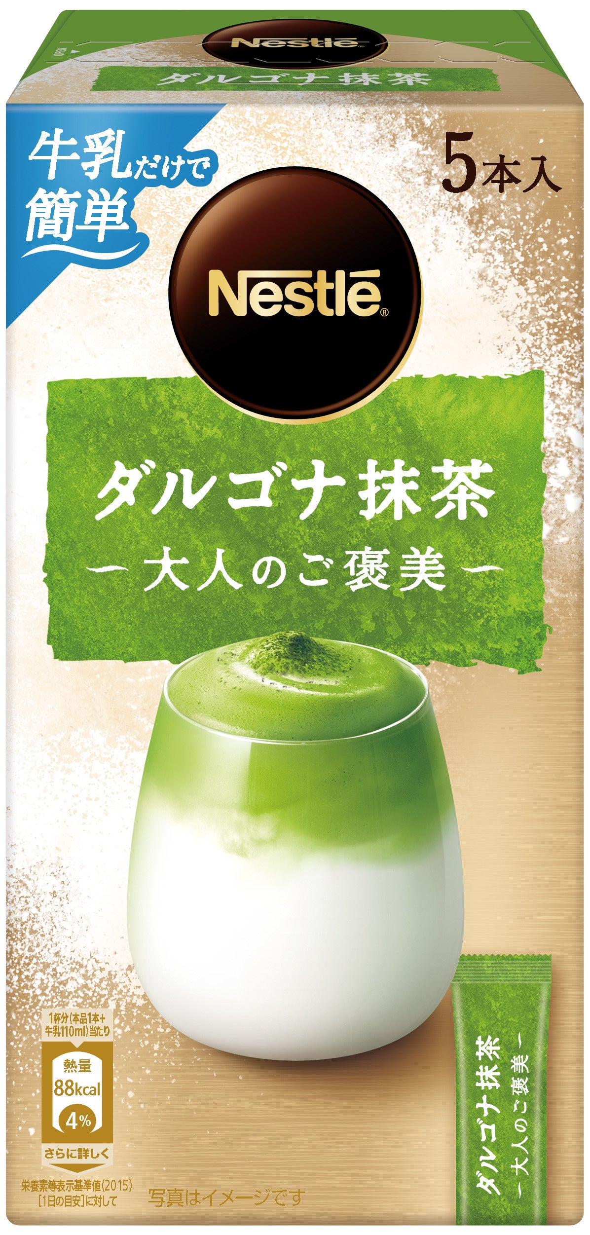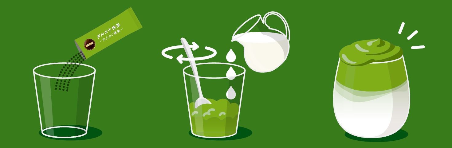 このたび、さらに新たな味わいをお楽しみいただくため、抹茶パウダー(宇治抹茶100%)を使用した新製品「ネスレ 大人のご褒美 ダルゴナ抹茶」を発売します。きめ細やかでリッチな抹茶の泡は、牛乳の甘さとの相性も良く、上質な香りと深い味わいが特長です。近年、カフェでのドリンク・デザートメニューや、手軽に飲める“抹茶ラテ”ドリンクが若い世代を中心に人気を集めるなか、ネスレは、ふわふわ泡の新感覚メニュー「ネスレ 大人のご褒美 ダルゴナ抹茶」で新たな楽しみ方を提供します。