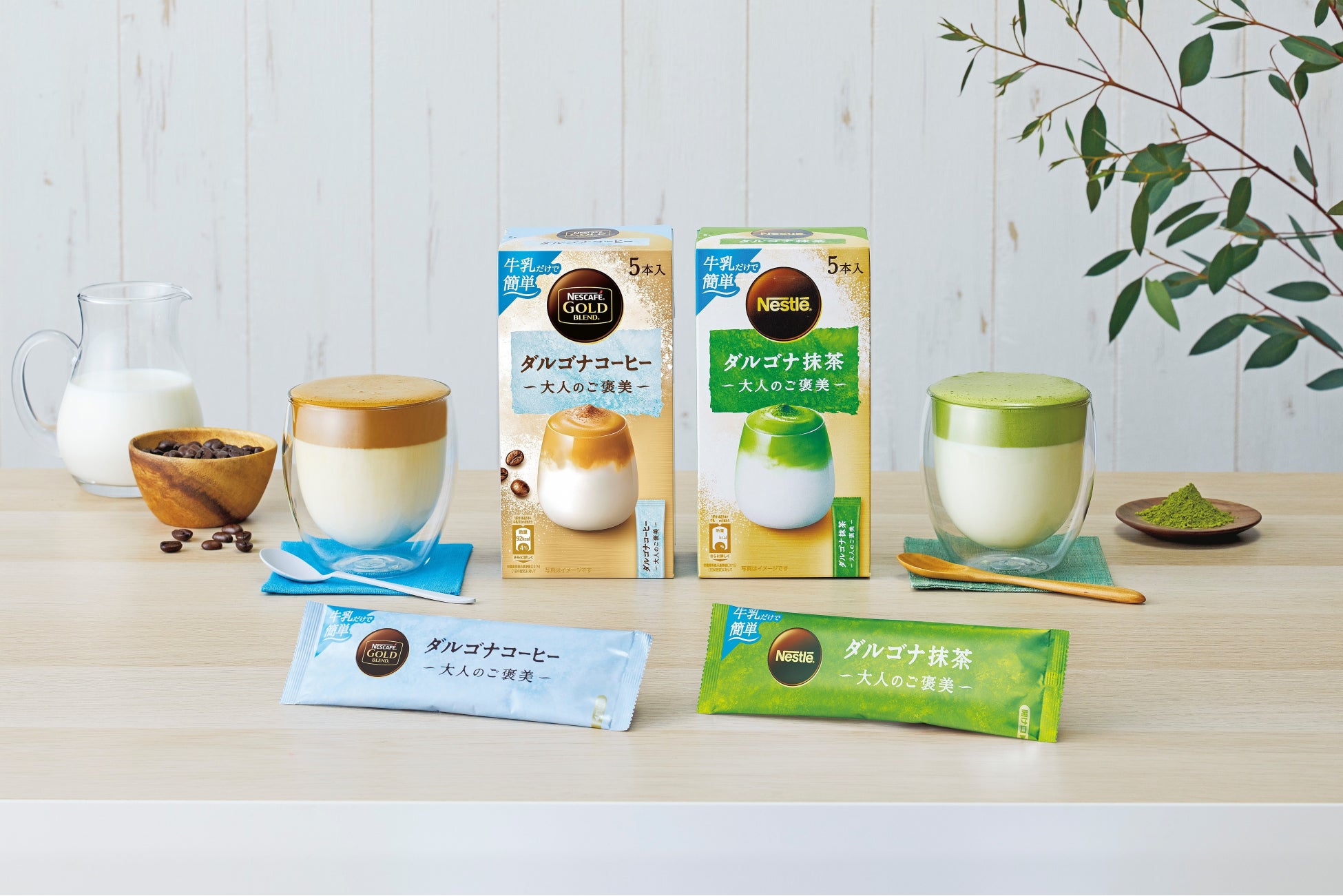 冷たい牛乳と混ぜるだけ!たった1分で、ふわふわ泡の“ご褒美アイスラテ”が作れる「ネスカフェ ゴールドブレンド 大人のご褒美 ダルゴナコーヒー」に「ダルゴナ抹茶」が仲間入りして、3月1日(火)新登場