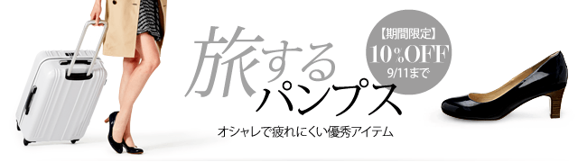 9/11(木)まで旅するパンプス 10%OFFクーポンキャンペーンも実施中。