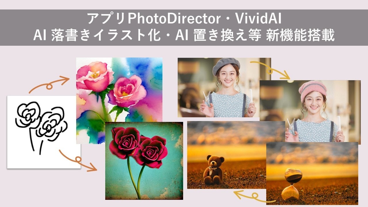 サイバーリンク、アプリ「PhotoDirector」、「Vivid AI」に AI 置き換え機能、AI 落書きイラスト化機能などの新機能を搭載
