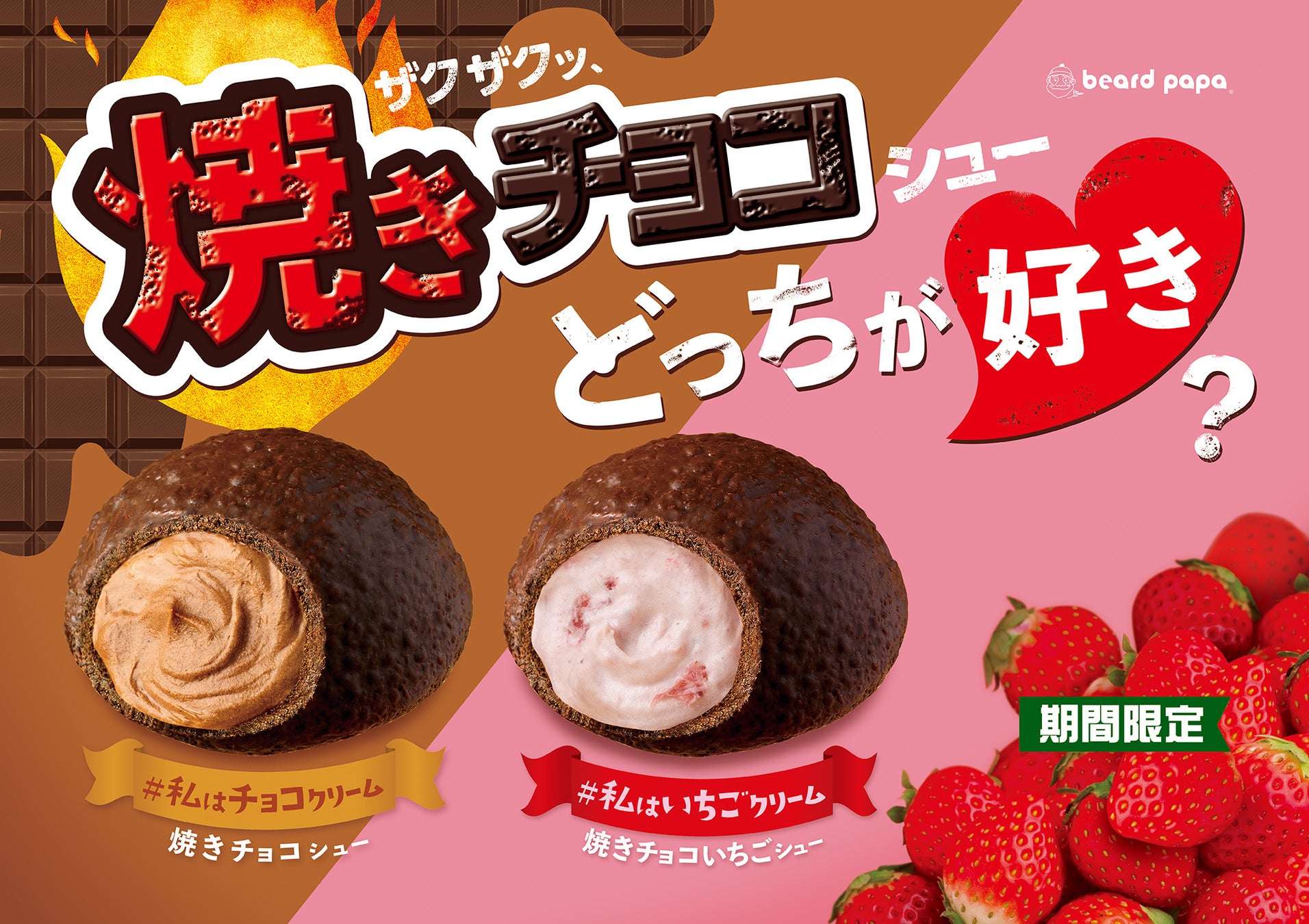 ビアードパパから“焼きチョコシュー”が登場!チョコたっぷりのザクザクシュー生地で食べたいのは、濃厚チョコクリーム、甘酸っぱい苺クリーム、どっち?