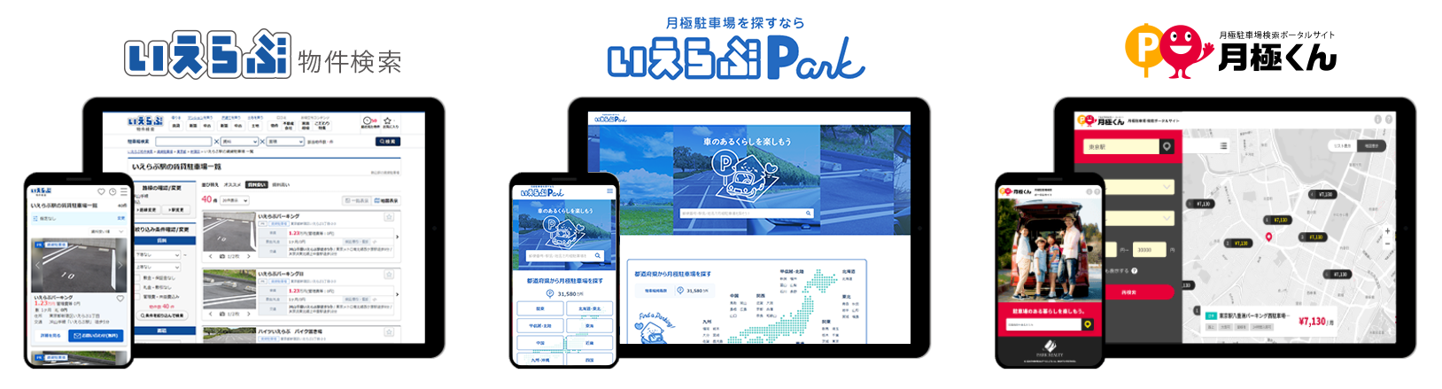 業界集客率最上位の賃貸不動産物件検索サイト「いえらぶ物件検索」と、物件登録数320,000箇所以上を誇る月極駐車場専用物件検索サイト「いえらぶPark駐車場検索」、物件登録数20,000箇所以上を誇る月極駐車場専用物件検索サイト「月極くん」にて、いえらぶパーク導入企業の管理物件を”無料”で掲載いたします。