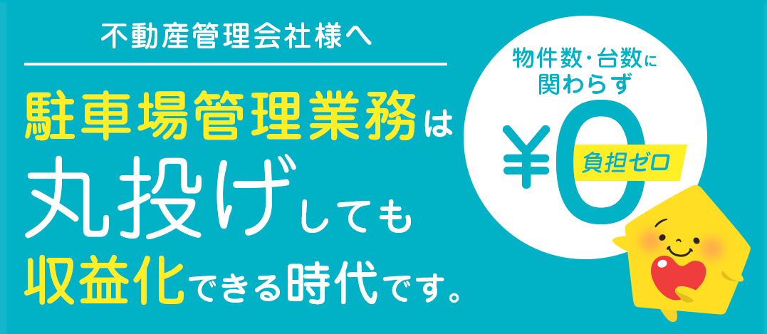 いえらぶパークが、不動産会社に代わり、駐車場運営に関わるあらゆる業務(申込み/審査/電子署名・決済<初期費用、毎月賃料>/管理/更新/解約)を代行運営するサービスです。不動産会社は管理業務全般を手放すことできるので、今まで発生していた駐車場運営に関わるあらゆる業務の管理コストを大幅削減することが可能です。