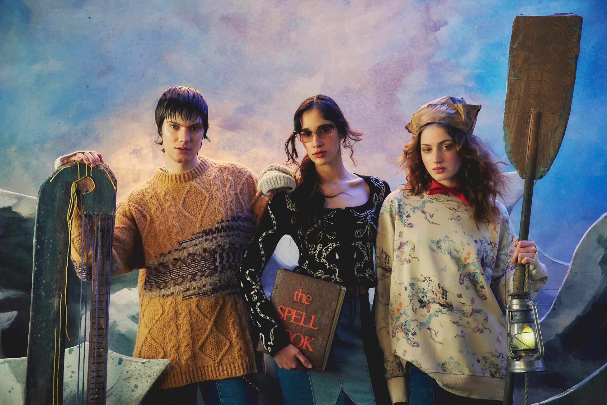このコレクションは、MAX&Co.のヘリテージを探究し、時間を超越するデザインとFloraniaの独自の世界観を融合させながら、現在に焦点を当てています。素材を守るために奮闘する「Circular Fighters」と呼ばれる衣服の修繕をするセーラーマン、衣服を反抗者のユニフォームに変換させるパンク、そして姪や甥に衣服を譲り、魔法のようにパーフェクトな状態に戻す3人の女性たちがコレクションの核となり、その姿はプリントで表現されています。フローラニアのチームが取り組む素材実験に基づき、生産過程で発生した端切れ糸を再利用しながら数量限定のユニークなピースを作製するなど「サーキュラーデザインは着地ではなく、現在進行形の探求であり、実験だ」とフローラは提言します。