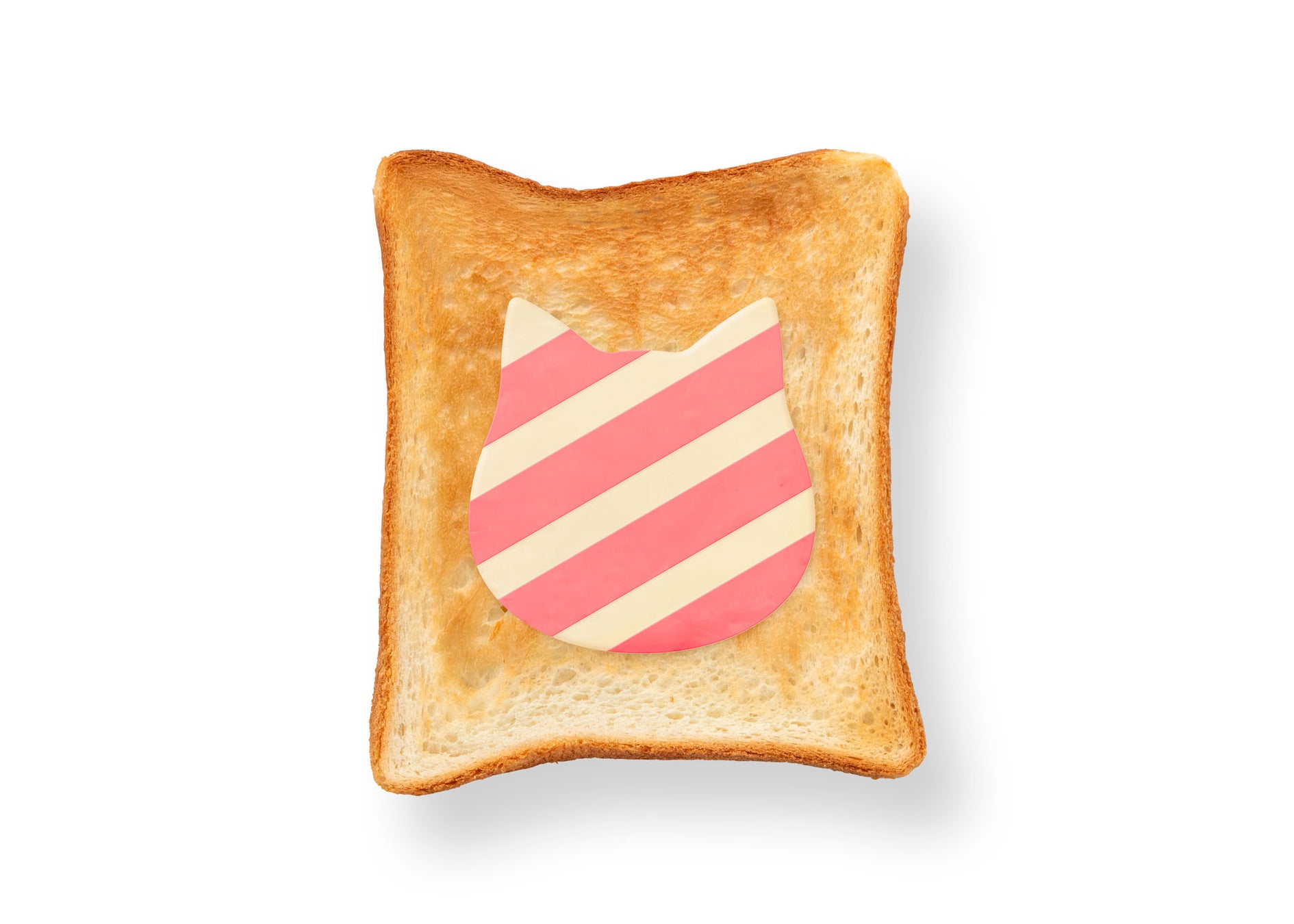 「しまねこバター。フランボワーズ」は、ねこの形にカットされたスライスバターに、フランボワーズのフレーバーバターを“しましま”状に薄くのせたキュートなバターです。トーストやパンケーキにのせるだけで、食卓が楽しくなるデザインが特徴。2mmの厚みや形状にもこだわり、見た目の可愛さだけでなく、口溶けの良さと風味の豊かさを実現しました。