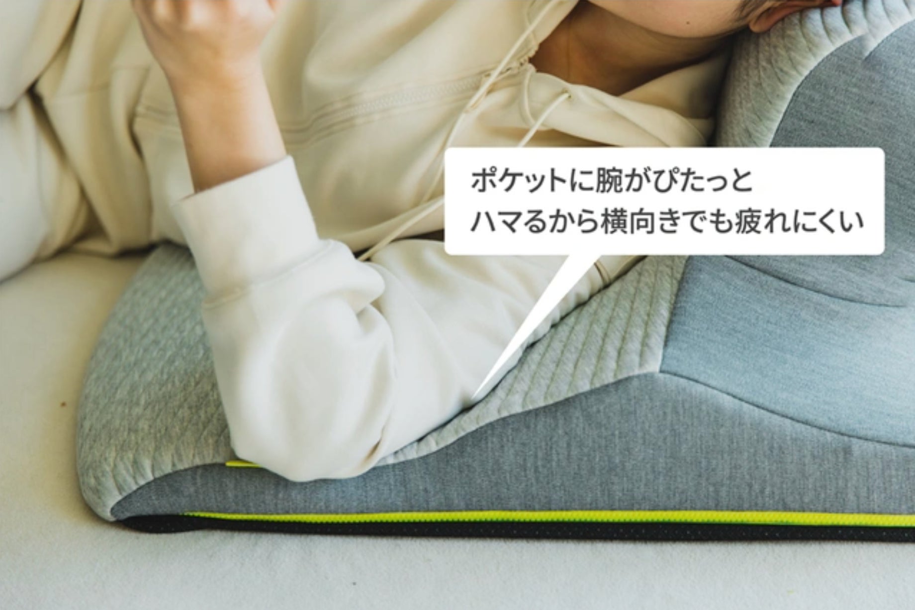 横向き寝時、ポケットに腕がぴたっとハマるので横向きでも疲れにくい。