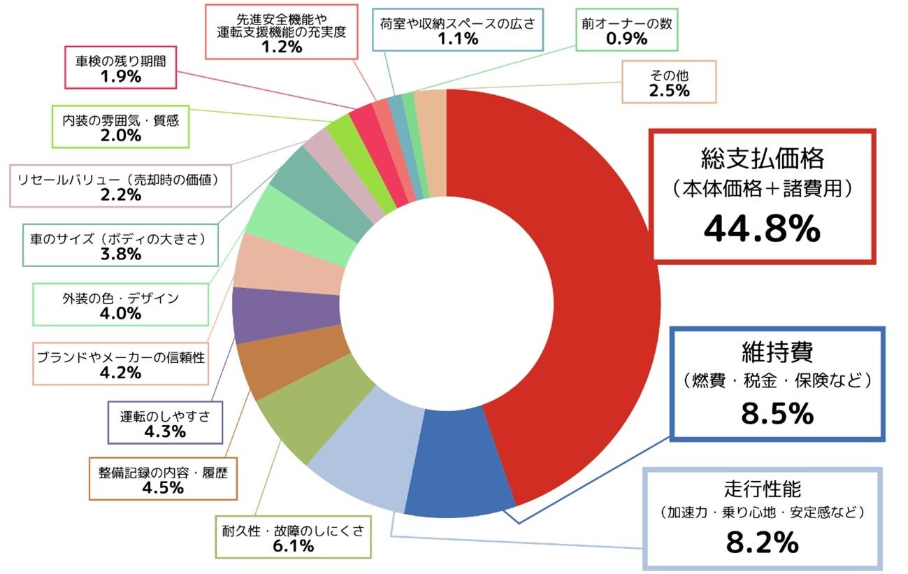 ・中古車を選ぶ際に最も重視しているのは44.8%で「総支払価格」(Q1)