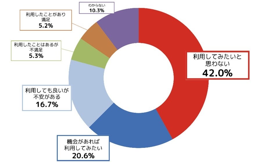 オンライン商談について聞いたところ、「利用してみたいと思わない」が42.0%でトップ、「機会があれば、利用してみたい」が20.6%、「利用しても良いが、不安がある」が16.7%で続く結果となり、現状ではオンライン商談を利用していない人が多くいることが分かりました。