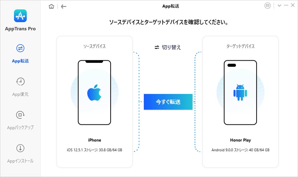 AppTransは、iPhoneとAndroidの間でアプリとアプリデータを転送することができるツールです。AppTransを使えば、チャット履歴やゲームのセーブデータなど、アプリに関連するすべての情報を新しいスマートフォンに移行することができます。