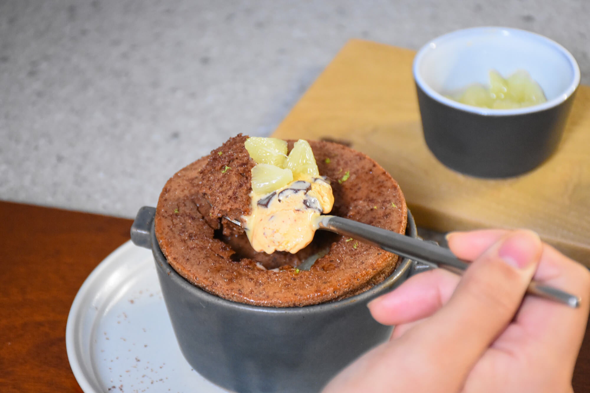 Minimalより、冬季限定のあつあつ出来立てスフレが登場。濃厚チョコレートを国産果実と楽しむ「チョコレートスフレ -りんごとベルガモット-」期間限定で登場